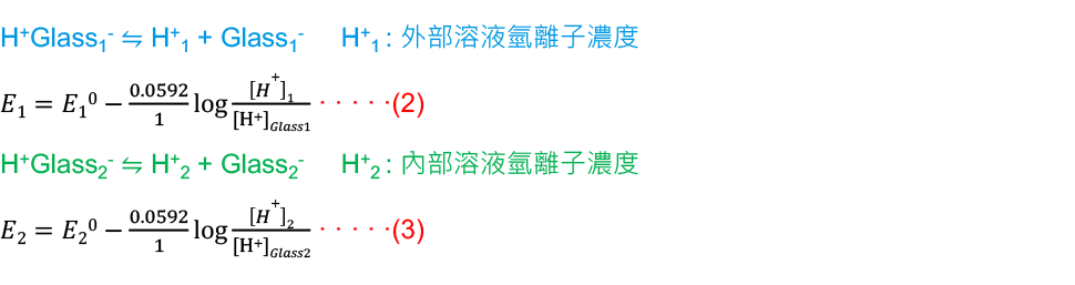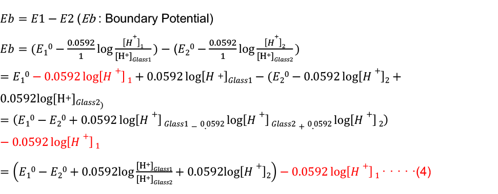 Which E10, E20 are the formal potential, the [H+]Glass is constant and the inner proton ion concentration [H+]2 is invariable as constant. The equation can be expressed as: